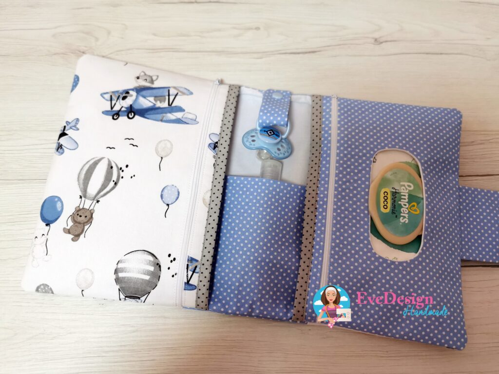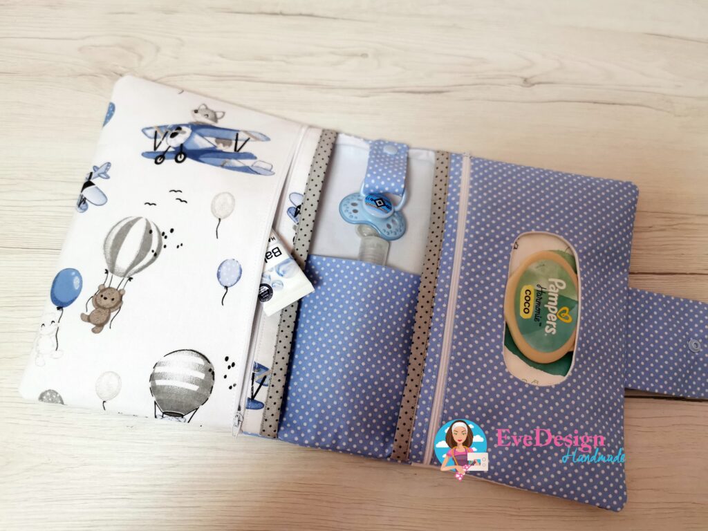 A dupla cipzáros pelenka táskánál a popsitörlős rész cipzárral záródik, így ha kevesebb a törlőkendő a csomagban akkor sem mozdul el a helyéről.